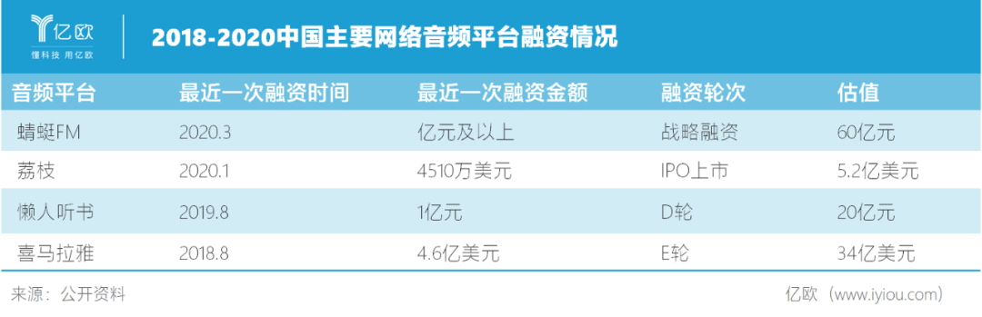 音頻行業(yè)很快受到資本的青睞。從2014開始,喜馬拉雅FM、蜻蜓FM、荔枝FM、多聽FM等音頻公司相繼完成多輪千萬美元量級的融資,資本的注入讓音頻行業(yè)的發(fā)展進(jìn)入到一個新的階段。