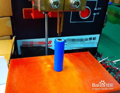 2. 將圓柱型電芯放在點焊機工作臺上,正極朝上并讓焊針居中對準,操作點焊機之前需要設定好電流,時間,兩根焊針之間的間距等細節。
