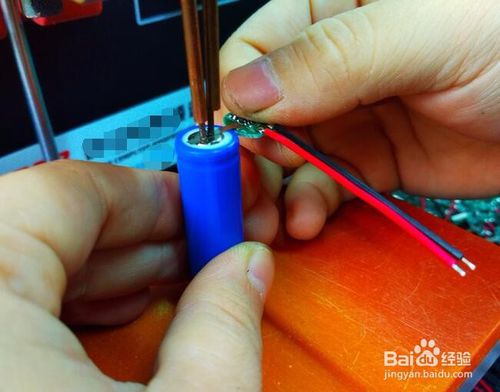 7. 彎折電池正極鎳帶后,將電池保護板平壓在電池正極輔料上,電池之都提示在彎折過程中不能損傷元器件,不能短路。